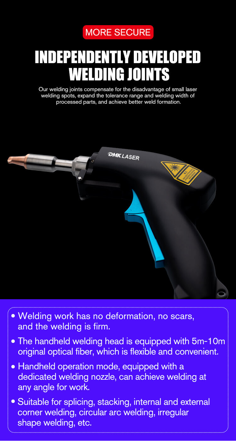 The welding speed of the device is 3-5 times that of traditional argon arc welding, with a small heat-affected zone, smooth welds without scars, and no need for post-weld grinding. The ergonomically designed welding gun with a safety touch switch provides effective protection against accidental operation, allowing ordinary workers to start working after short-term training.