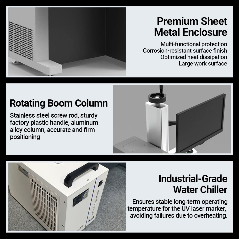 Macchina per marcatura laser UV - Lunghezza d'onda corta 355 nm + Potenza regolabile 3 W-30 W + Marcatura ultrafine + Raffreddamento a liquido con temperatura costante - Per cosmetici/settore medico/componenti elettronici/marcatura su PCB flessibili