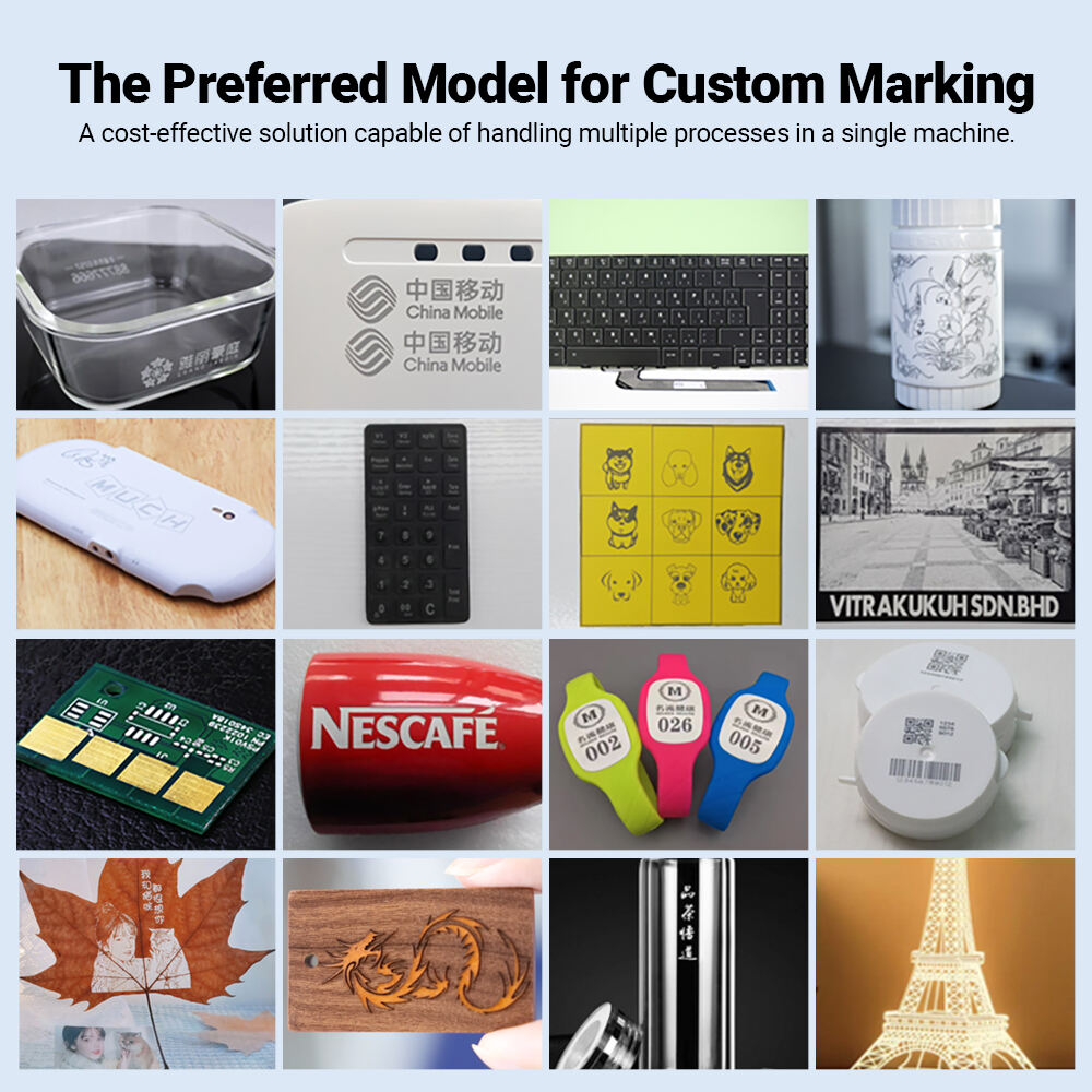 - U Macchina per Marcatura Laser è un'attrezzatura industriale di marcatura ad alta gamma specializzata in lavorazioni ultrafini. Adottando la tecnologia laser a fibra con durata d'impulso regolabile, utilizza un laser a corta lunghezza d'onda di 355 nm per rompere direttamente le catene molecolari del materiale, ottenendo una marcatura permanente. A differenza della lavorazione per evaporazione superficiale dei laser a onda lunga, garantisce un effetto di marcatura più fine e non presenta problemi di bruciatura del materiale.
