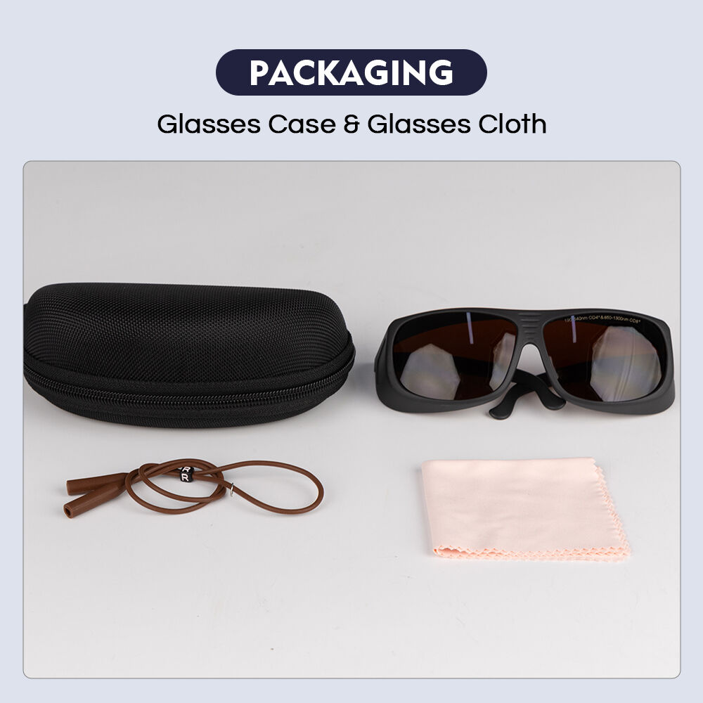 - What accessories are included in the packaging? Answer: The package contains the brown safety goggles, a case, a cleaning cloth, and a lanyard—convenient for storage and daily maintenance.