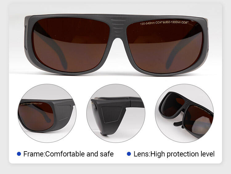 This is a CE-certified brown industrial laser safety glasses with an OD6+ protection level, precisely covering 190-450nm (UV) and 850-1300nm (green/IR) bands. Unlike conventional protective goggles, its brown lenses are gentler on the eyes in high-glare scenarios while balancing clear vision and high durability, making it suitable for multiple welding applications.