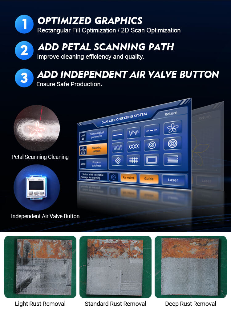 Taking advantage of the difference in laser absorptivity between pollutants and substrates, or the certain difference in melting point and boiling point temperature between the two. After pollutants absorb laser energy, they instantly vaporize, vibrate and expand, and finally peel off from the substrate surface to achieve the cleaning purpose.