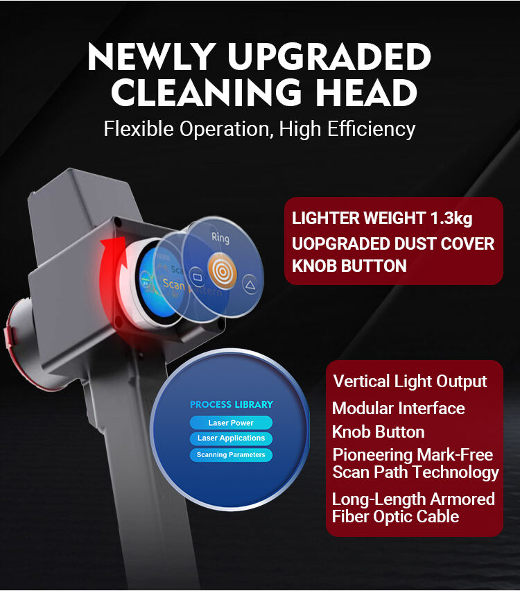 - Characteristics: The net weight of the whole machine is 35.5kg, and the hand-held head is only 1.1kg, which is lightweight and easy to carry; equipped with universal wheels for convenient equipment movement; multiple scanning graphics are preset to ensure the cleaning effect under complex working conditions.