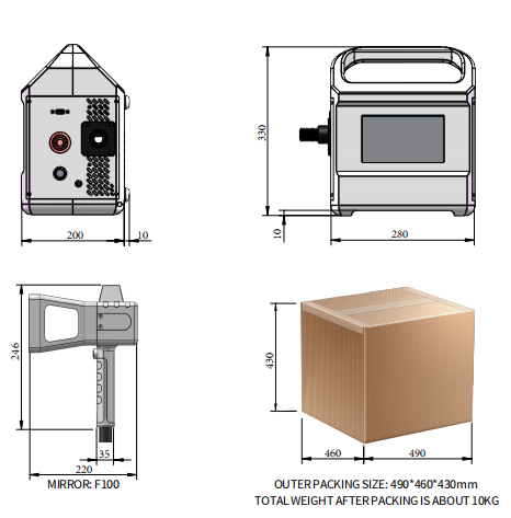 | ปริมาตรการทํางาน | - พื้นที่ทำเครื่องหมาย: 100 มม. × 100 มม. - ขนาดตัวสะท้อนแสง: 10 มม. (มาตรฐาน) - ความเร็วในการทำเครื่องหมาย: 600 อักขระ/วินาที (ขึ้นอยู่กับวัสดุและเนื้อหาการทำเครื่องหมาย) |